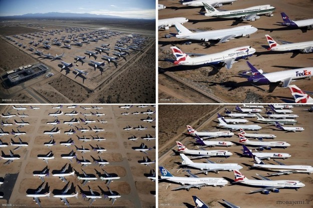 آیا تا به حال به این موضوع فکر کرده اید که هواپیماها پس از طی سالها ارایه خدمات چه سرنوشتی در پایان برای آنها رقم می خورد؟ عکس متعلق به فرودگاه ویکتور ویل در کالیفرنیای آمریکا که یکی از ده ها مرکزی است که هواپیماهای بازنشسته و خارج از سرویس در آن نگهداری می شود .